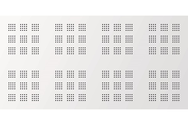 A Gyptone Activ’Air® BIG Quattro 47 nagyméretű gipszkarton építőlemez 2×4 db mezőben, 3×3-as kisebb perforációs egységgel perforált. A négyzet alakú mintázat lyukmérete 12 mm, amelyek tengelytávolsága kb. 25 mm. A 4×4 lyukból álló kis minták mérete mindössze 87mm x 87mm. Nagy méretű építőlemez kisebb „kazettákra” osztva, amelyek még kisebb perforált mezőkre tagolódnak. Különlegesség, dinamizmus, egyediség – hangelnyelése mellett ezt kínálja ez a lap.