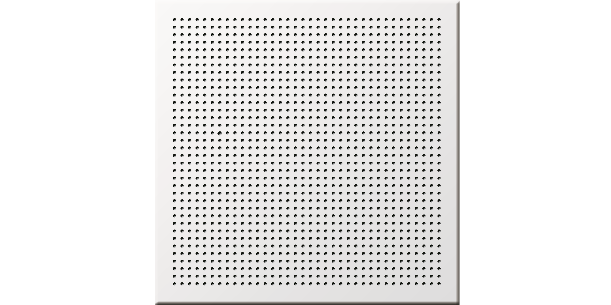 A Gyptone Point 11 Activ’Air teljes felületén szabályos elrendezésű, kör alakú perforációval mintázott, felülete fehérre festett. A perforációk átmérője 6,5 mm, amelyek tengelytávolsága 15 mm. Perforált felület aránya: 12%.