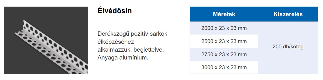 Rigips élvédősín derékszögű pozitív sarkok élképzésére